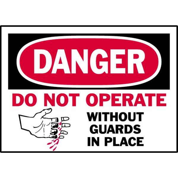 Equipment Label, Horizontal Rectangle, Number of Printed Sides 1, English, Sign Legend DO NOT OPERATE WITHOUT GUARDS IN PLACE, Sign Legend Style Symbol and Text, Package Quantity 5