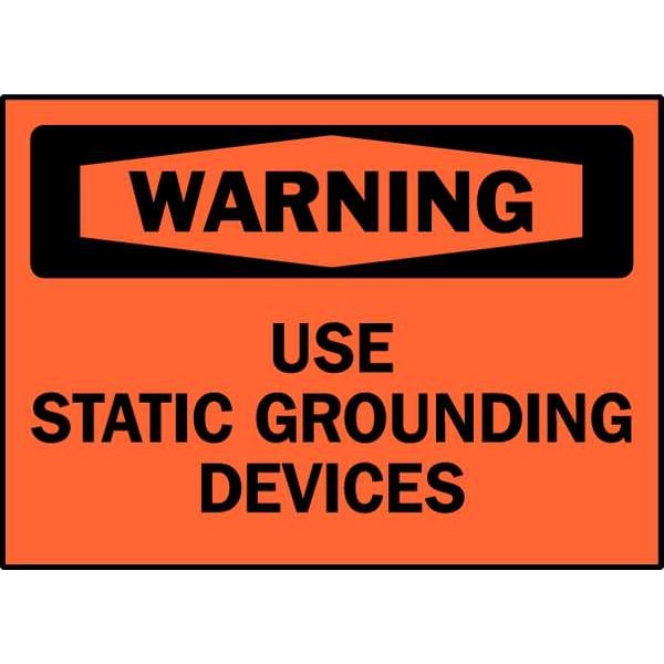 Equipment Label, Warning Use Static Grounding Devices, 3 1/2 in H x, 5 in W, Vinyl (Discontinued)
