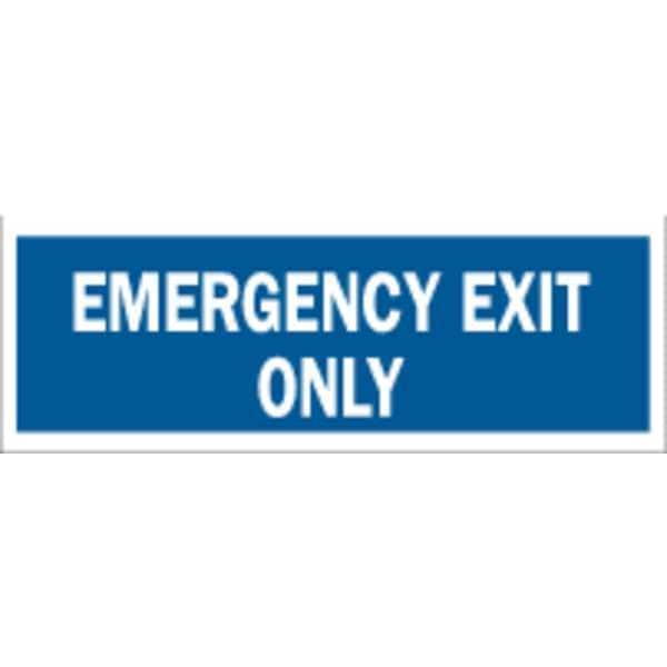 Exit Sign, Fiberglass, 14" W, 5" H, Emergency Exit Only, Blue, White
