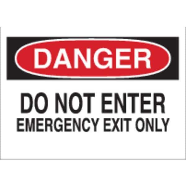 Danger Sign, Sign Subject Matter Exit and Entrance, Height 7 In., Width 10 In., Sign Material Plastic, Sign Mounting Style With Mounting Holes, Header Danger, Legend Do Not Enter Emergency Exit Only, Printed Language English, Sign Shape Rectangle