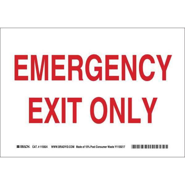 Emergency Exit Sign, Sign Subject Matter Exit and Entrance, Height 7 In., Width 10 In., Sign Material Plastic, Sign Mounting Style With Mounting Holes, Header No Header, Legend Emergency Exit Only, Printed Language English, Sign Shape Rectangle