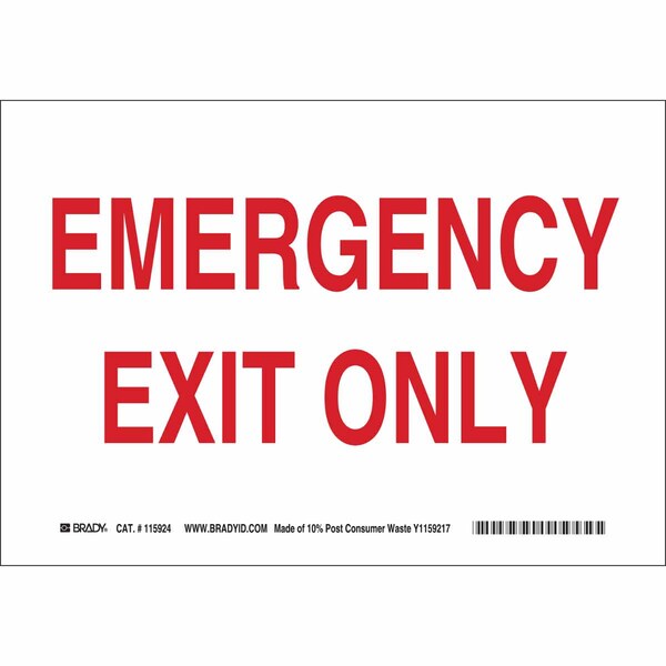 Emergency Exit Sign, Sign Subject Matter Exit and Entrance, Height 10 In., Width 14 In., Sign Material Plastic, Sign Mounting Style With Mounting Holes, Header No Header, Legend Emergency Exit Only, Printed Language English, Sign Shape Rectangle
