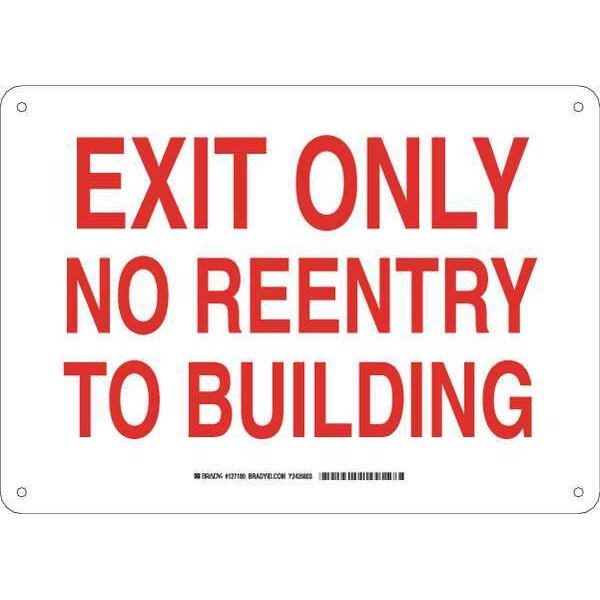 Exit Sign, Sign Subject Matter Exit and Entrance, Height 10 In., Width 14 In., Sign Material Plastic, Sign Mounting Style With Mounting Holes, Header Exit Only, Legend Exit Only No Reentry To Building, Printed Language English, Sign Shape Rectangle