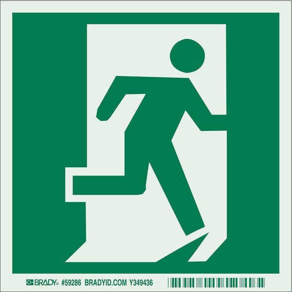 Exit Sign, Plastic, 6" W, 6" H, No Legend, Green