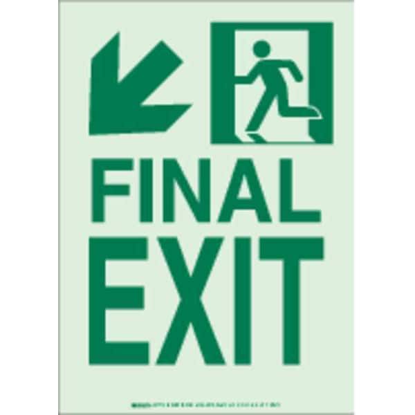Exit Sign, Sign Subject Matter Exit and Entrance, Height 14 In., Width 10 In., Sign Material Polyester, Sign Mounting Style Adhesive Surface, Header No Header, Legend Final Exit, Printed Language English, Sign Shape Rectangle