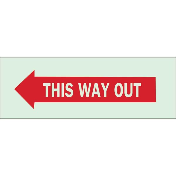 Exit Sign, Polyester, 10" W, 3 1/2 in H, This Way Out, Red, White