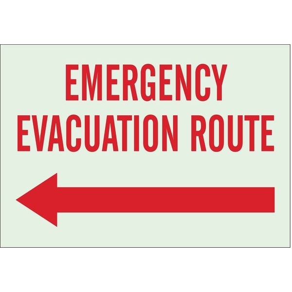 Emergency Exit Sign, Sign Subject Matter Evacuation, Assembly or Shelter, Height 10 in, Width 14 in, Sign Material Polyester, Sign Mounting Style Adhesive Surface, Header No Header, Legend Emergency Evacuation Route, Printed Language English, Sign Shape Rectangle