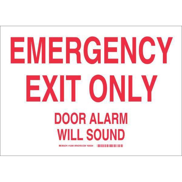 Emergency Exit Sign, Sign Subject Matter Exit and Entrance, Height 9 In., Width 12 In., Sign Material Vinyl, Sign Mounting Style Adhesive Surface, Header No Header, Legend Emergency Exit Only Door Alarm Will Sound, Printed Language English, Sign Shape Rectangle