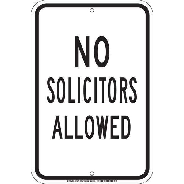 Facility Sign, Sign Subject Matter Trespassing and Property, Height 18 in, Width 12 in, Sign Material Plastic, Sign Mounting Style With Mounting Holes, Header No Header, Legend No Solicitors Allowed, Printed Language English, Sign Shape Rectangle