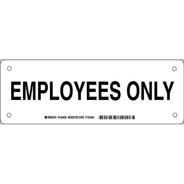 Facility Sign, Sign Subject Matter Employees and Visitors, Height 3 1/2 in, Width 10 in, Sign Material Plastic, Sign Mounting Style With Mounting Holes, Header No Header, Legend Employees Only, Printed Language English, Sign Shape Rectangle