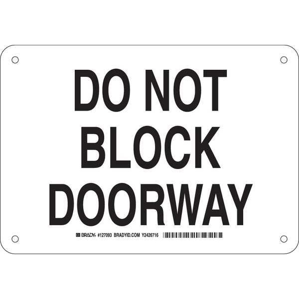 Facility Sign, Plastic, 10" W, 7" H, Do Not Block Doorway, White
