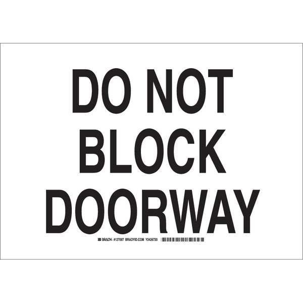 Facility Sign, Polyester, 14" W, 10" H, Do Not Block Doorway, White