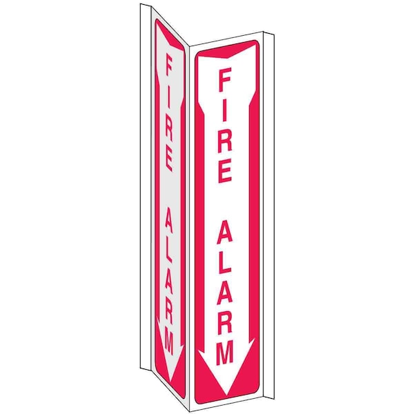 Fire Alarm Sign, Sign Subject Matter Fire Equipment, Height 18 in, Width 7 1/2 in, Sign Material Plastic, Sign Mounting Style With Mounting Holes, V-Shaped, Header No Header, Legend Fire Alarm, Printed Language English, Sign Shape V-Shaped