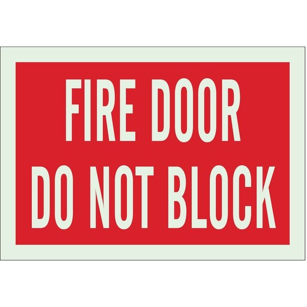 Fire Door Sign, Sign Subject Matter Exit and Entrance, Height 7 In., Width 10 In., Sign Material Polyester, Sign Mounting Style Adhesive Surface, Header No Header, Legend Fire Door Do Not Block, Printed Language English, Sign Shape Rectangle