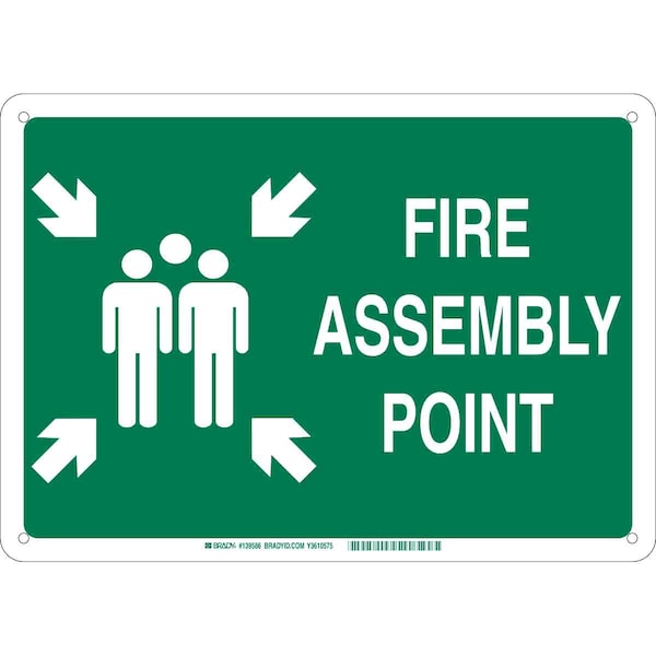 Fire Emergency Sign, Sign Subject Matter Evacuation, Assembly or Shelter, Height 18 in, Width 24 in, Sign Material Aluminum, Sign Mounting Style With Mounting Holes, Header No Header, Legend Fire Assembly Point, Printed Language English, Sign Shape Rectangle