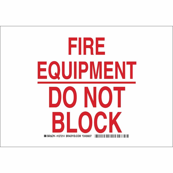 Fire Equipment Sign, Sign Subject Matter Fire Equipment, Height 7 in, Width 10 in, Sign Material Plastic, Sign Mounting Style With Mounting Holes, Header Fire Equipment, Legend Fire Equipment Do Not Block, Printed Language English, Sign Shape Rectangle
