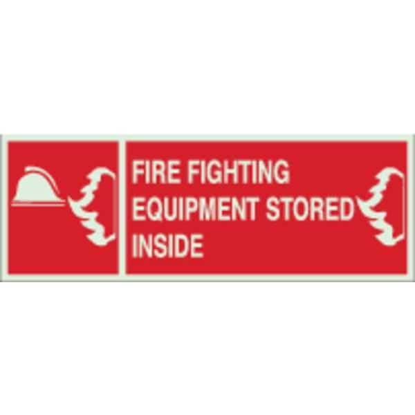 Fire Equipment Sign, Sign Subject Matter Fire Equipment, Height 5 in, Width 14 in, Sign Material Polyester, Sign Mounting Style Adhesive Surface, Header No Header, Legend Fire Fighting Equipment Stored Inside, Printed Language English, Sign Shape Rectangle