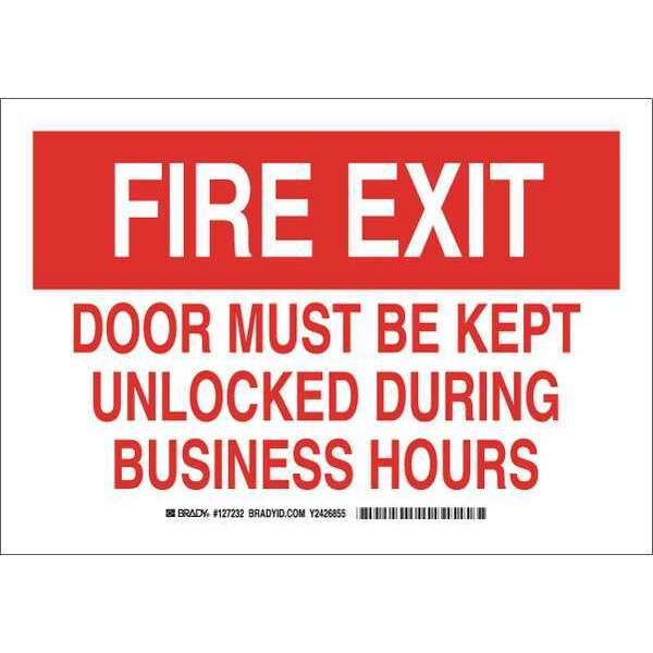 Fire Exit, Door Must Be Kept Unlocked During Business Hours, 10" W x 7" H, Polyester, 127232