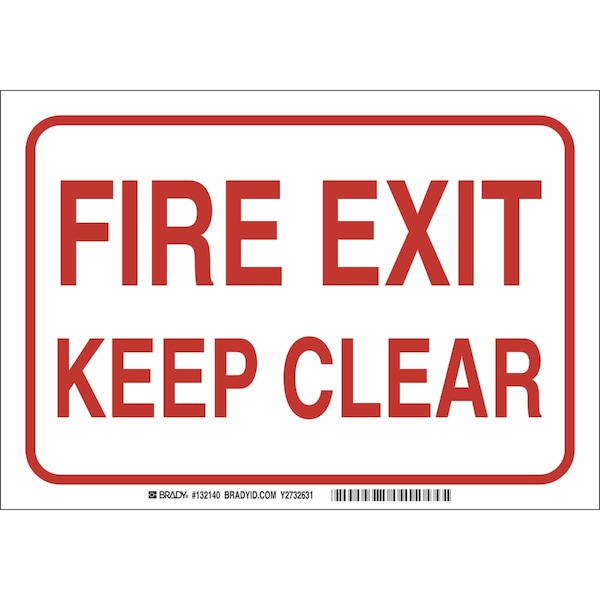 Fire Exit Sign, Sign Subject Matter Exit and Entrance, Height 10 In., Width 14 In., Sign Material Plastic, Sign Mounting Style With Mounting Holes, Header No Header, Legend Fire Exit Keep Clear, Printed Language English, Sign Shape Rectangle