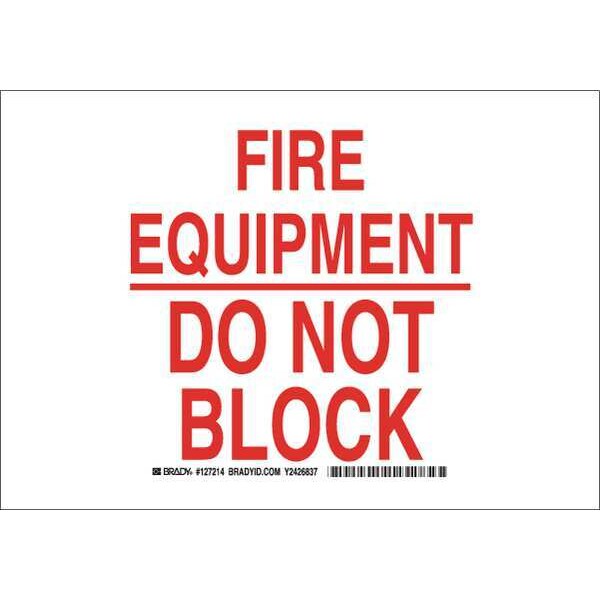 Fire Equipment Sign, Sign Subject Matter Fire Equipment, Height 10 in, Width 14 in, Sign Material Polyester, Sign Mounting Style Adhesive Surface, Header Fire Equipment, Legend Fire Equipment Do Not Block, Printed Language English, Sign Shape Rectangle