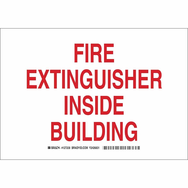 Fire Extinguisher Sign, Sign Subject Matter Fire Equipment, Height 10 in, Width 14 in, Sign Material Aluminum, Sign Mounting Style With Mounting Holes, Header No Header, Legend Fire Extinguisher Inside Building, Printed Language English, Sign Shape Rectangle