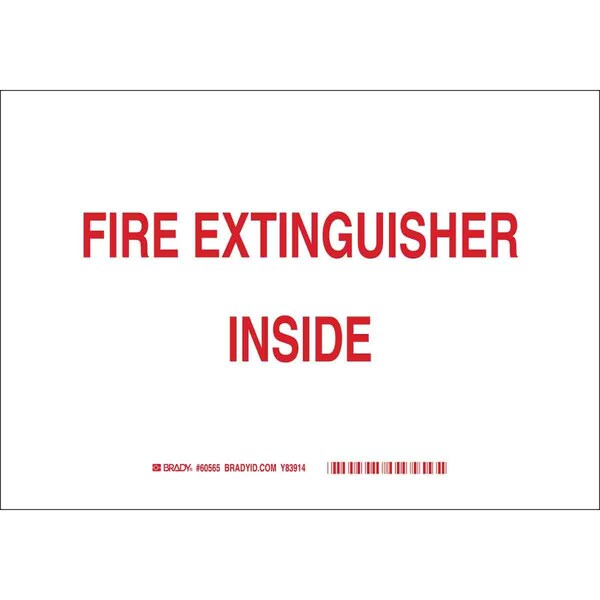 Safety Sign, Sign Subject Matter Fire Equipment, Height 7 in, Width 10 in, Sign Material Polyester, Sign Mounting Style Adhesive Surface, Header No Header, Legend Fire Extinguisher Inside, Printed Language English, Sign Shape Rectangle