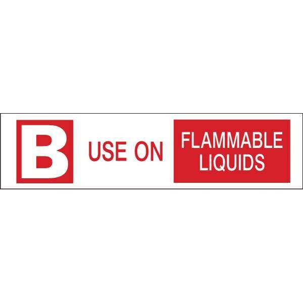 Fire Extinguisher Label, Horizontal Rectangle, Number of Printed Sides 1, English, Sign Format Other Format, Sign Legend B USE ON FLAMMABLE LIQUIDS, Sign Legend Style Text