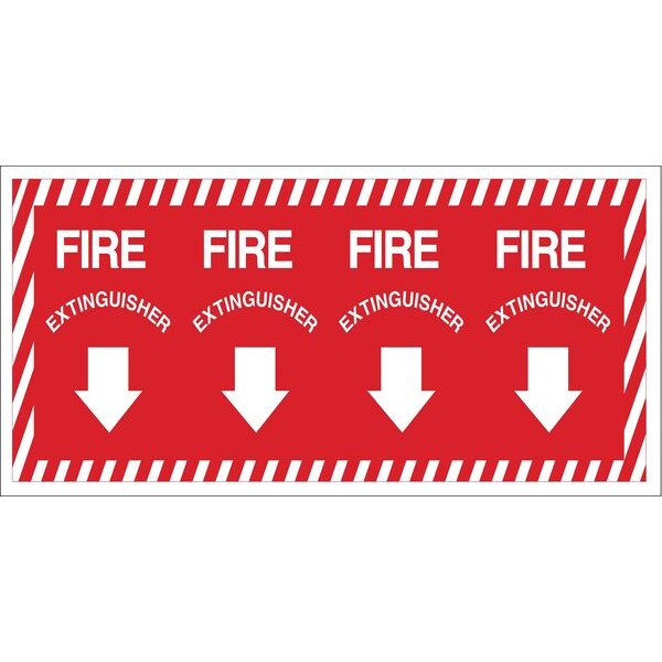 Fire Extinguisher Sign, Sign Subject Matter Fire Equipment, Height 14 in, Width 28 in, Sign Material Polyester, Sign Mounting Style Adhesive Surface, Header No Header, Legend Fire Extinguisher, Printed Language English, Sign Shape Rectangle