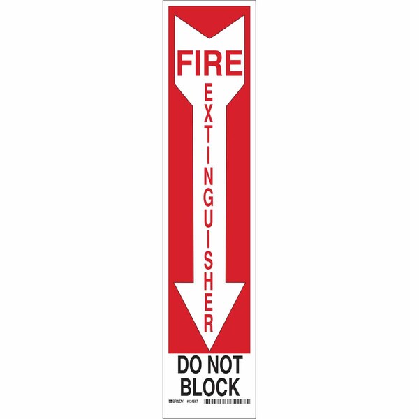 Fire Extinguisher Sign, Sign Subject Matter Fire Equipment, Height 18 in, Width 4 in, Sign Material Aluminum, Sign Mounting Style With Mounting Holes, Header No Header, Legend Fire Extinguisher Do Not Block, Printed Language English, Sign Shape Rectangle