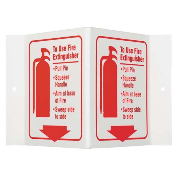 Fire Extinguisher Sign, Sign Subject Matter Fire Equipment, Height 6 in, Width 9 in, Sign Material Acrylic, Sign Mounting Style Surface, Header To Use Fire Extinguisher, Legend To Use Fire Extinguisher Pull Pin Squeeze Handle Aim At Base Of Fire Sweep Side To Side, Printed Language English, Sign Shape Rectangle