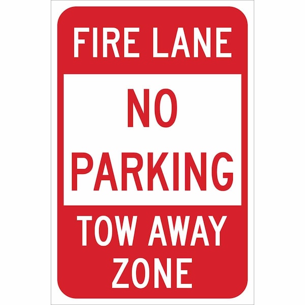Fire Lane Sign, Height 18 in, Width 12 In., Sign Material Aluminum, Sign Mounting Style Surface, Printed Language English, Sign Shape Rectangle