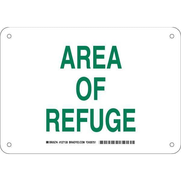 Fire Safety Sign, Sign Subject Matter Evacuation, Assembly or Shelter, Height 7 in, Width 10 in, Sign Material Aluminum, Sign Mounting Style With Mounting Holes, Header No Header, Legend Area Of Refuge, Printed Language English, Sign Shape Rectangle