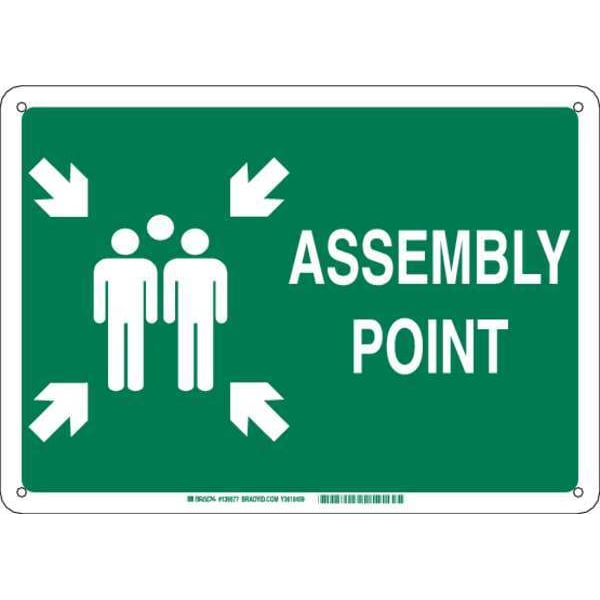 Fire Safety Sign, Sign Subject Matter Assembly or Shelter, Evacuation, Height 10 in, Width 14 in, Sign Material Fiberglass, Sign Mounting Style With Mounting Holes, Header No Header, Legend Assembly Point, Printed Language English, Sign Shape Rectangle