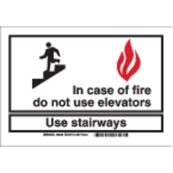 Fire Stairways Sign, Plastic, 10" W, 7" H, In Case of Fire Do Not Use Elevators Use Stairways