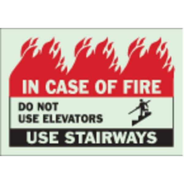 Fire Stairways Sign, Sign Subject Matter Exit and Entrance, Height 7 In., Width 10 In., Sign Material Polyester, Sign Mounting Style Adhesive Surface, Header In Case Of Fire, Legend Do Not Use Elevators Use Stairways, Printed Language English, Sign Shape Rectangle