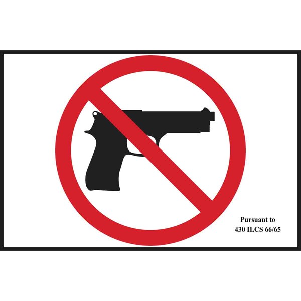 Firearms Sign, Sign Subject Matter Weapons, Devices or Substances, Height 4 in, Width 6 in, Sign Material Vinyl, Sign Mounting Style Adhesive Surface, Header No Header, Legend No Legend, Printed Language No Text, Sign Shape Diamond