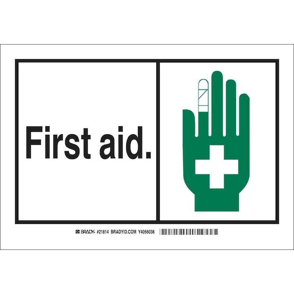 First Aid Sign, Sign Subject Matter First Aid, Height 7 In., Width 10 In., Sign Material Plastic, Sign Mounting Style With Mounting Holes, Header No Header, Legend First Aid, Printed Language English, Sign Shape Rectangle