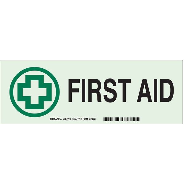 First Aid Sign, Sign Subject Matter First Aid, Height 5 In., Width 14 In., Sign Material Polyester, Sign Mounting Style Adhesive Surface, Header No Header, Legend First Aid, Printed Language English, Sign Shape Rectangle