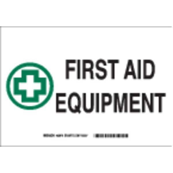 First Aid Sign, Sign Subject Matter First Aid, Height 7 In., Width 10 In., Sign Material Plastic, Sign Mounting Style With Mounting Holes, Header No Header, Legend First Aid Equipment, Printed Language English, Sign Shape Rectangle