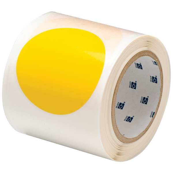 Floor Marking Tape, Circle, Solid, Yellow, 3 1/2 in, 3 1/2 in, 8 mil, Polyester, Brady(R), ToughStripe(R), Series B-514, Legend No Legend, Glow In The Dark No, Retroreflective Grade Non-Reflective, Tape Finish Gloss, Package Quantity 80