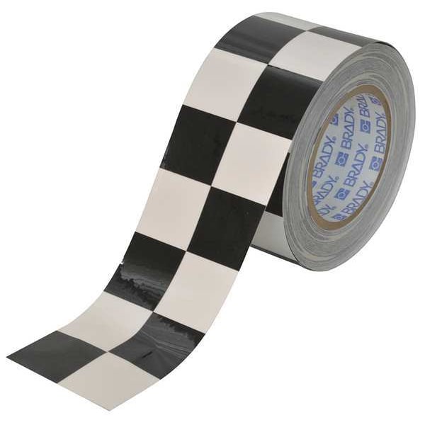 Floor Marking Tape, Continuous Roll, Checkered, Black/White, 3 in, 100 ft, 8 mil, Polyester, Brady(R), ToughStripe(R), Series B-514, Legend No Legend, Glow In The Dark No, Retroreflective Grade Non-Reflective, Tape Finish Gloss