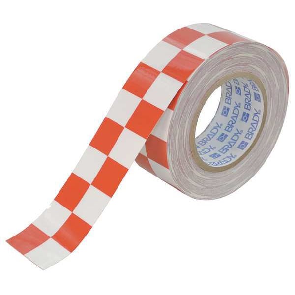 Floor Marking Tape, Continuous Roll, Checkered, Red/White, 2 in, 100 ft, 8 mil, Polyester, Brady(R), ToughStripe(R), Series B-514, Legend No Legend, Glow In The Dark No, Retroreflective Grade Non-Reflective, Tape Finish Gloss