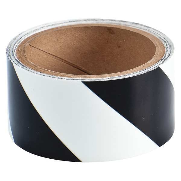 Floor Marking Tape, Continuous Roll, Striped, Black/White, 2 in, 15 ft, 8 mil, Polyester, Brady(R), BradyGlo(TM), Series B-324, Legend No Legend, Glow In The Dark Yes, Retroreflective Grade Non-Reflective