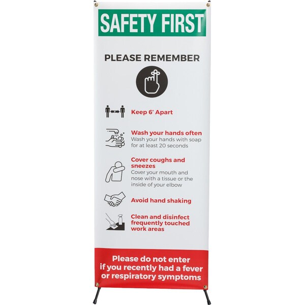 Having the right information helps keep everyone safe. Post this sign in your facility to keep your employees and visitors informed on the best ways to prevent the spread of illnesses. Collapses for easy storage when not in use. Ideal for use in offices, stores, restaurants and more. Includes banner stand, sign and storage bag.