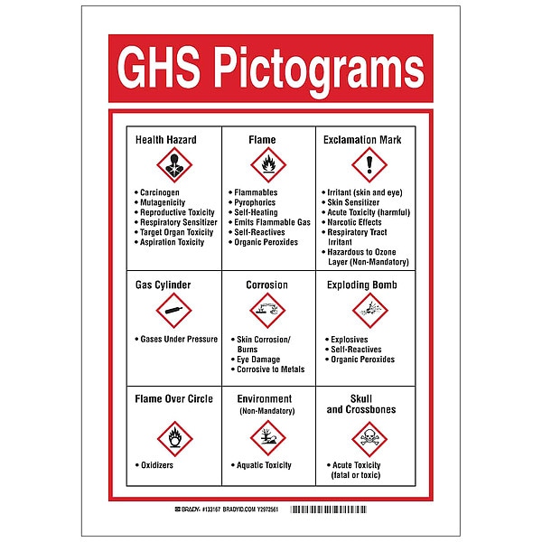 Sign, GHS Picto, Fiberglass, Height 14 in, Width 10 in, Header GHS Pictograms, Language English, Mounting Style Wall-Mount, Thickness 0.11 in, Sign Shape Rectangle