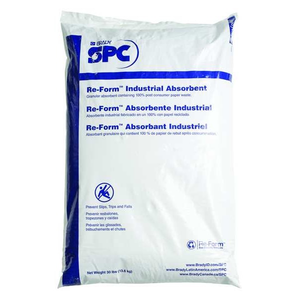 Granular Sorbent, Fluids Absorbed Universal, Specific Liquid Compatibility Coolants, Lubricants, Oils, Solvents, Water, Container Type Bag, Composition Detail Paper, Container Type and Capacity 30 lb Bag, Weight 30 lb, Volume Absorbed per Pkg. 16 gal, Deodorizing No