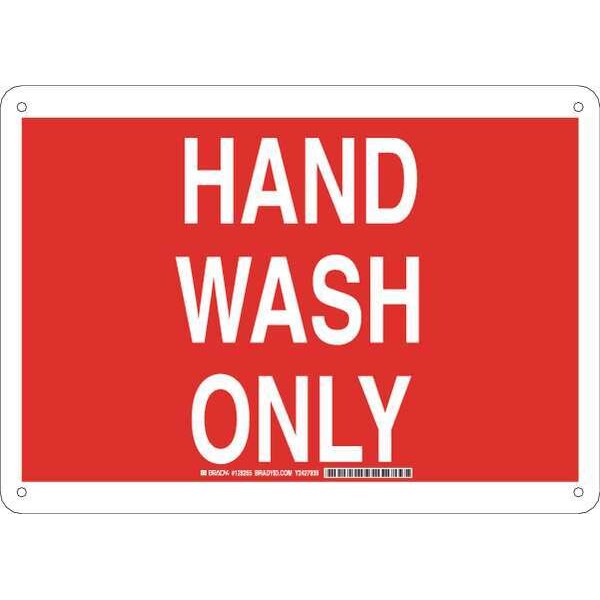 Restroom Sign, Sign Subject Matter Restrooms, Height 10 In., Width 14 In., Sign Material Aluminum, Sign Mounting Style With Mounting Holes, Header No Header, Legend Hand Wash Only, Printed Language English, Sign Shape Rectangle