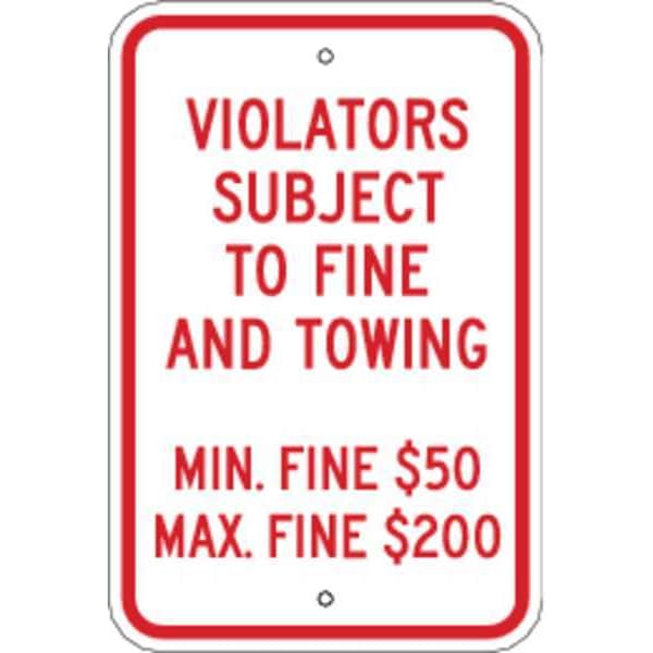 Violators Subject To Fine And Towing Min Fine 50 Max Fine 200