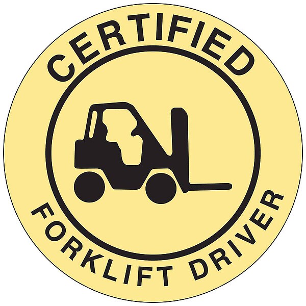 Hard Hat Label, Diameter 2 in, Height Not Applicable, Material Vinyl, Number of Labels 4, Preprinted Images Certified Forklift Driver, Preprinted Text Certified Forklift Driver, Preprinted Text Color Black, Yellow, Retroreflective Grade Non-Reflective, Self-Adhesive Yes, Shape Circle, Subject Matter Heavy Equipment Operation, Visibility Standard, Width Not Applicable, Background Color Yellow, Language English, Standards UNSPSC 55121606, For Use With Brand and Series Universal, Package Quantity 4
