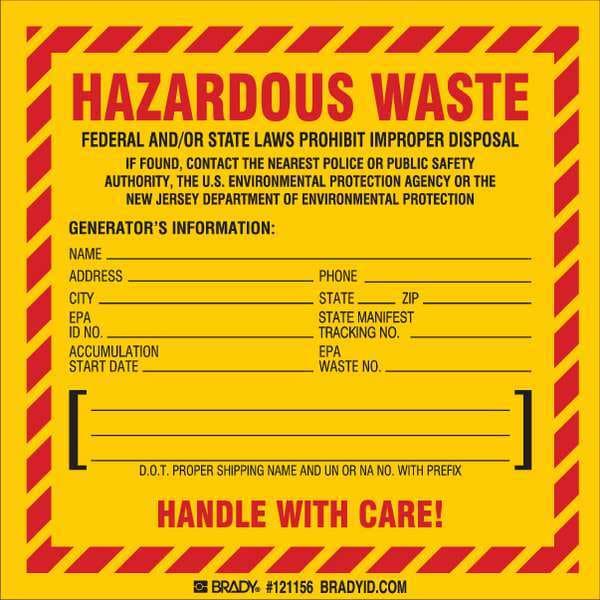 Hazardous Waste Label, NJ Specific, PK50